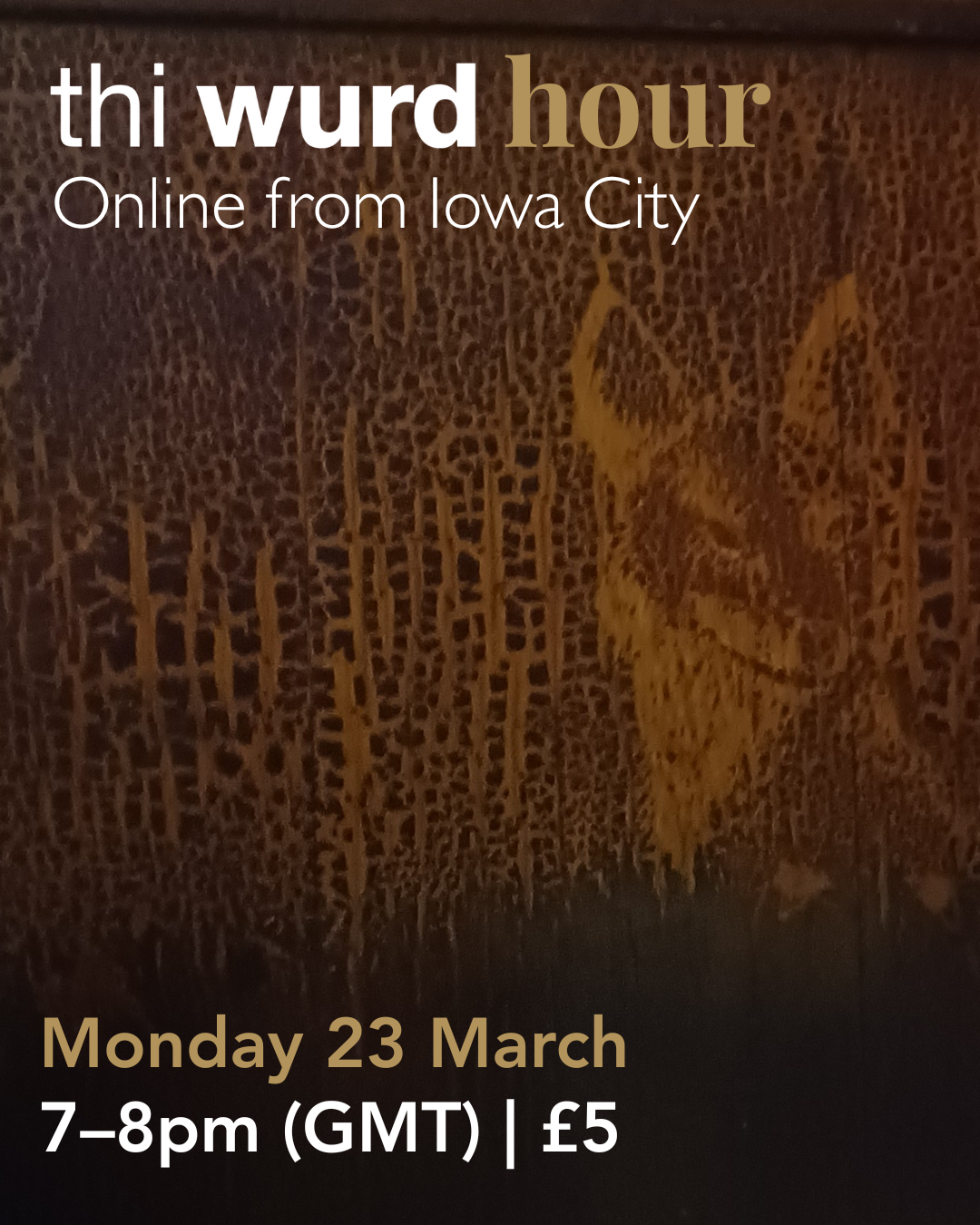 Online place at thi wurd hour, taking place Monday 23 March, 7-8pm (GMT), On booking you will receive an email confirmation, and you will be emailed separately with the link for the online session.
